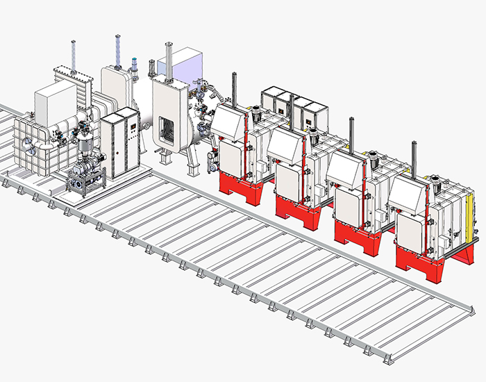 对于大批量自动化制造,我们的自动化热处理生产线提供了一种模块化和高度可扩展的解决方案,集成了真空炉、淬火室和负载穿梭模块,可以根据客户需求自由组合。